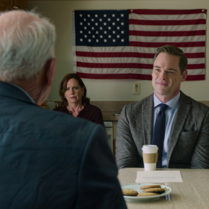 Buiten ratelde een Menards-vrachtwagen langs mijn huis in Marion, en vanuit de woonkamer klonk het zachte gezoem van een voorbeschouwing op een college football-wedstrijd die ik vergeten was uit te zetten. Megan zat naast hem in een crèmekleurige trui, met haar handen zo stevig in haar schoot gevouwen dat haar knokkels wit waren geworden. Derek boog zich voorover en glimlachte naar me met het heldere, geoefende geduld van een man die op het punt stond iets vanzelfsprekends uit te leggen aan iemand die het nog niet helemaal snapte.