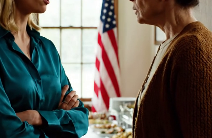 Het had een zware, imposante uitstraling, met een centraal ornament. Mijn vader stond aan het hoofd van de tafel, met rechte rug en een kalme houding, het soort kalmte dat hij altijd had als hij geloofde dat zekerheid gelijk stond aan macht. Karen zat midden op de tafel, crèmekleurige broek, lichtblauw overhemd, haar handen netjes op haar schoot gevouwen. Rationeel. Verantwoordelijk. Klaar.