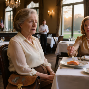 Mijn schoondochter Emily liet een verschrikt lachje horen dat ze had moeten inslikken. Mijn zoon stond stokstijf met zijn hand nog steeds om zijn waterglas. En daar zat ik dan, met de oude bruine leren handtas van mijn moeder op mijn schoot, die met de opgedroogde blauwe inktvlek bij de sluiting, kijkend naar de vrouw die net in het openbaar had geprobeerd me te beroven van het laatste wat ik nog te beschermen had.