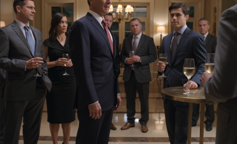 Hij glimlachte met het zelfverzekerde gemak dat investeerders in hem had doen geloven en vreemden hem hadden doen bewonderen. Zijn hand rustte nonchalant op de schouder van de vrouw die naast hem zat.