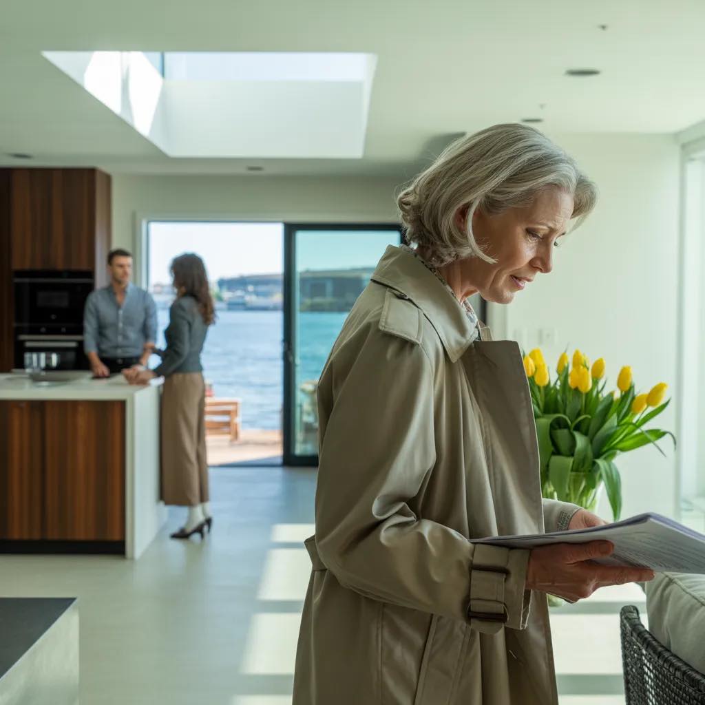 De leren stoel onder me was ijskoud, dwars door mijn jurk heen. Mijn tas lag op mijn schoot, zwaarder dan normaal omdat erin, in een eenvoudige crèmekleurige map, het papier zat dat me de halve nacht ervoor wakker had gehouden. Tegenover me zat mijn zoon, negenenveertig jaar oud, stropdas recht, kaak strak, meer geïrriteerd dan bezorgd. Naast hem zat zijn vrouw Patricia, zoals altijd onberispelijk gekleed, haar handen zo netjes gevouwen op tafel dat het leek alsof ze op een vergadering wachtte. Aan Richards andere kant zat de vastgoedadvocaat die hij had ingehuurd, een keurige man genaamd Greg die doordeweeks manchetknopen droeg en sprak op een toon die suggereerde dat andermans gevoelens een onnodig ongemak waren.
