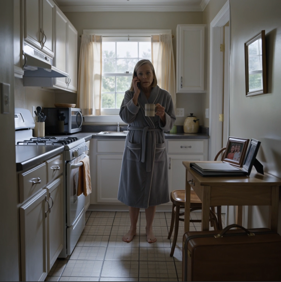 Ik kwam thuis uit de VS met een koffer vol cadeaus en een hart vol vertrouwen. De deur was niet eens op slot. Ik hoorde de stem van mijn vrouw – koud, scherp: “Schiet op. Doe niet zo oud in mijn huis.” Toen sneed het trillende antwoord van mijn moeder door me heen: “Alsjeblieft… mijn handen doen pijn.” Ik stond als aan de grond genageld in de gang en keek toe hoe ze de vloer schrobde als een dienstmeisje. Mijn maag draaide zich om. Mijn vrouw draaide zich om, glimlachte en zei: “Oh… je bent vroeg.” En toen besefte ik het – dit was niet de eerste keer.