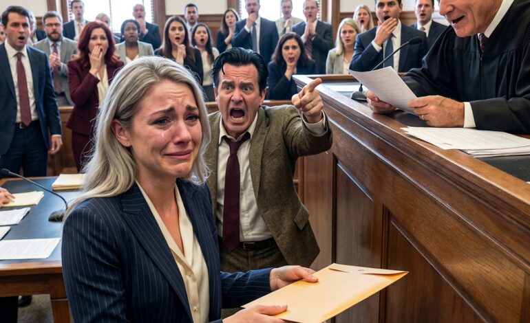 Ik haalde een grote envelop tevoorschijn – dik, zwaar en verzegeld – en legde die op de salontafel tussen ons in.