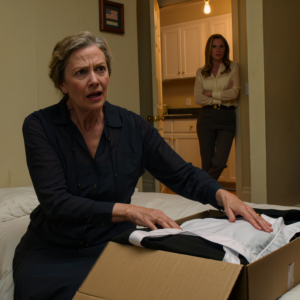 Na mijn faillissement ben ik bij mijn zoon ingetrokken om mijn leven weer op de rails te krijgen, maar op de allereerste dag legde mijn schoondochter een dienstmeisjesuniform op mijn bed en zei koud: “Trek het aan.” Mijn zoon stond er alleen maar bij en voegde eraan toe: “Doe wat ze zegt en wees dankbaar dat je nog een dak boven je hoofd hebt.” Dus ik pakte stilletjes mijn koffer en ging naar buiten. Een paar maanden later waren diezelfde twee mensen het die niet meer recht in de ogen konden kijken.