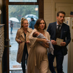 Zes maanden na onze scheiding stond mijn ex-man met zijn verloofde en de trouwuitnodiging voor mijn deur. Maar zodra hij de pasgeborene in mijn armen zag, werd hij bleek en rende hij in paniek langs haar heen…