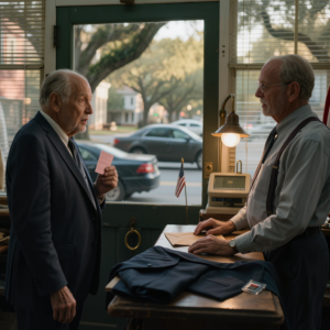 Ik ging de jas van mijn schoonzoon ophalen bij de vertrouwde kleermaker in Savannah. De oude kleermaker deed de deur op slot en fluisterde: “Haal de kinderen vanavond naar buiten.” Toen hij een briefje tevoorschijn haalde dat in de jaszak verstopt zat, begreep ik eindelijk dat er in mijn familie al veel langer iets mis was dan ik wist.