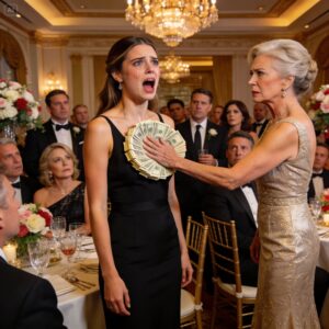 Op ons verlovingsfeest haalde mijn toekomstige schoonmoeder een stapel bankbiljetten tevoorschijn en sneerde: “Hoeveel moet ik betalen om je te laten verdwijnen? Een meisje dat naar een stal ruikt, hoort niet thuis in deze familie.” Vervolgens sloeg ze het geld voor ieders ogen tegen mijn borst. Mijn moeder stond op, keek haar recht in de ogen en zei: “We gaan ervandoor. Zorg er maar voor dat je er geen spijt van krijgt.” Maar de volgende ochtend stond ze huilend voor ons huis.