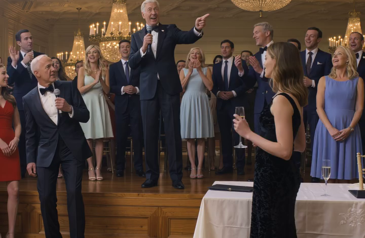 Graham Archer stond in het midden, in een marineblauw maatpak, met de kalme glimlach van een man die gewend was te applaudisseren. Naast hem droeg zijn moeder, Patricia Archer, parels en een zilveren jurk die het licht ving elke keer dat ze bewoog. Ze hield één hand op haar champagnefluit alsof het een microfoon was waarop ze had gewacht.