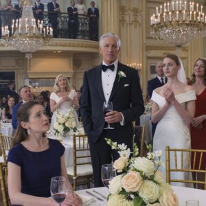 Ik vond hem aan de andere kant van de zaal, aan tafel één, natuurlijk. Zilvergrijs haar naar achteren gekamd, een Brioni-pak, lachend met een man met een dikke nek die ik niet herkende. Margaret stond naast hem in een rode jurk, een parelketting rustend op haar sleutelbeen, een hand op Geralds arm alsof ze een vlag aan een mast vastmaakte.