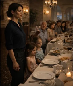 Mijn jongste, Lily, was zes. Ze keek naar de servetten, toen naar het mandje met knoflookbrood aan de kant van mijn zus, en sloeg haar ogen neer zonder iets te zeggen. Haar oudere zus, Emma, negen jaar oud en die al wist hoe vernedering werkt, zat heel stil naast me met haar handen in haar schoot.