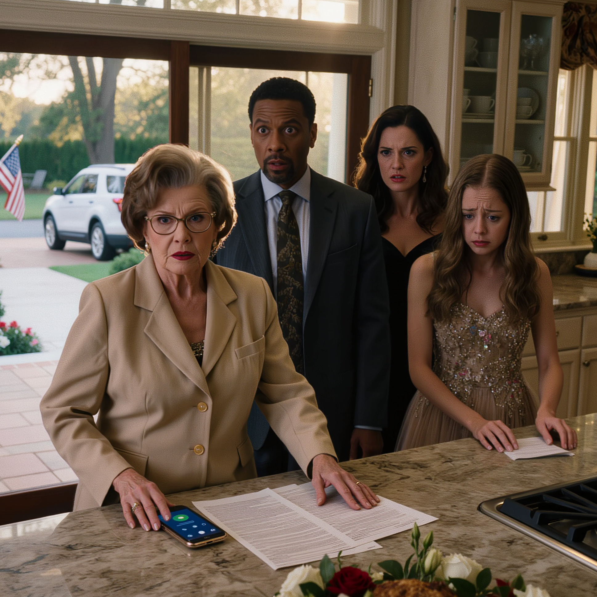 Niemand sprak hem tegen. Niet Rebecca. Niet Mitchell. Niet mijn broer Neil, die steeds op zijn telefoon keek. Zelfs mijn moeder niet, die de kunst van het emotioneel verdwijnen terwijl ze fysiek bleef zitten, tot in de perfectie beheerste.