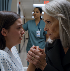 “Oma… ik ben op de eerste hulp. Mijn vriend heeft me van de trap geduwd. Hij heeft tegen de verpleegster gezegd dat ik dronken was. Mama heeft ervoor gekozen hem te geloven.”
