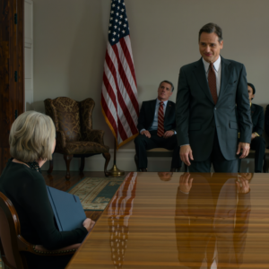 “Mevrouw Vance,” zei hij, zijn bariton kalm en gelijkmatig, dwars door het geroezemoes van het gesprek heen. “Mag ik even met u spreken op mijn kantoor?”