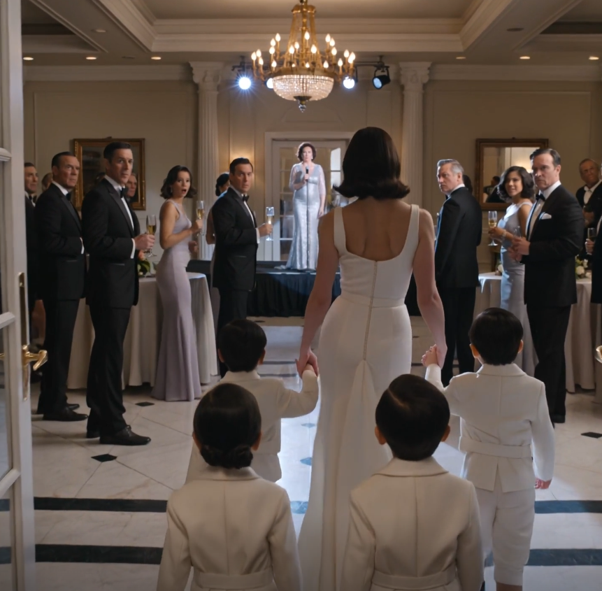 De hele achtertuin leek te verstijven. Denise stond stokstijf met haar plastic wijnglas half aan haar mond. Een van Jenna’s vriendinnen stopte met lachen bij de dranktafel. Zelfs Eric, die in een Ohio State-schort bij de grill stond – een grapje van iemand – verstijfde met de tang in zijn hand.