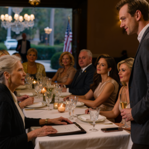 Ze zat naast Kevin in een zijden jurk in de kleur van champagne, één hand op zijn pols, de andere rustend bij haar telefoon zodat ze zichzelf tussen de happen door op het zwarte scherm kon checken. Haar moeder, Diane Mercer, knikte en nam de toast in ontvangst als een vrouw die haar hele leven had gewacht tot de zoon van iemand anders eindelijk het juiste zou zeggen in een volle zaal.