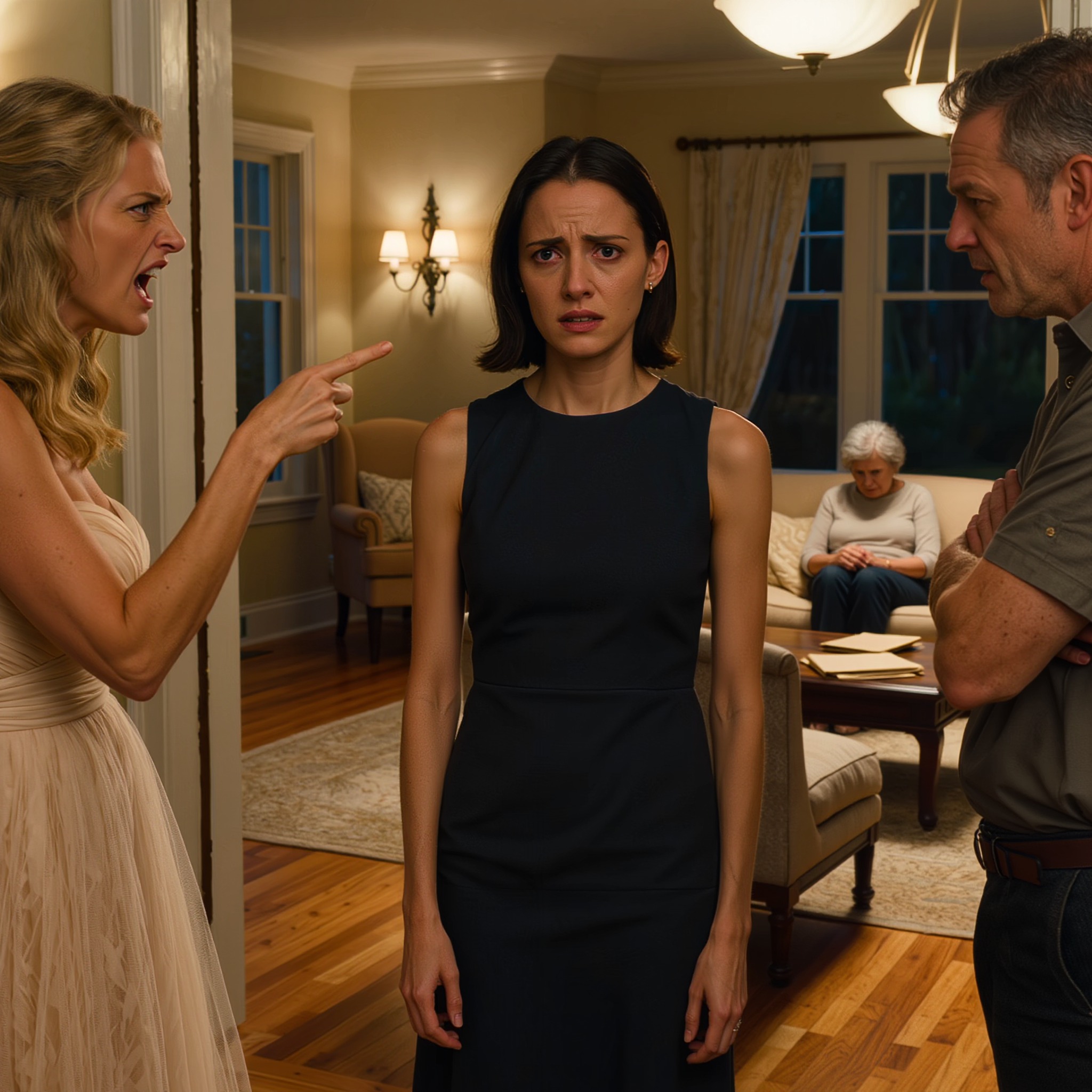 Emily stapte achter hem aan, haar haar strak in model, haar lippenstift donker en perfect aangebracht, haar parfumgeur nog in de verte. Ze leunde tegen de deurpost, zoals mensen doen op feestjes wanneer ze weten dat het interessante gedeelte gaat beginnen.