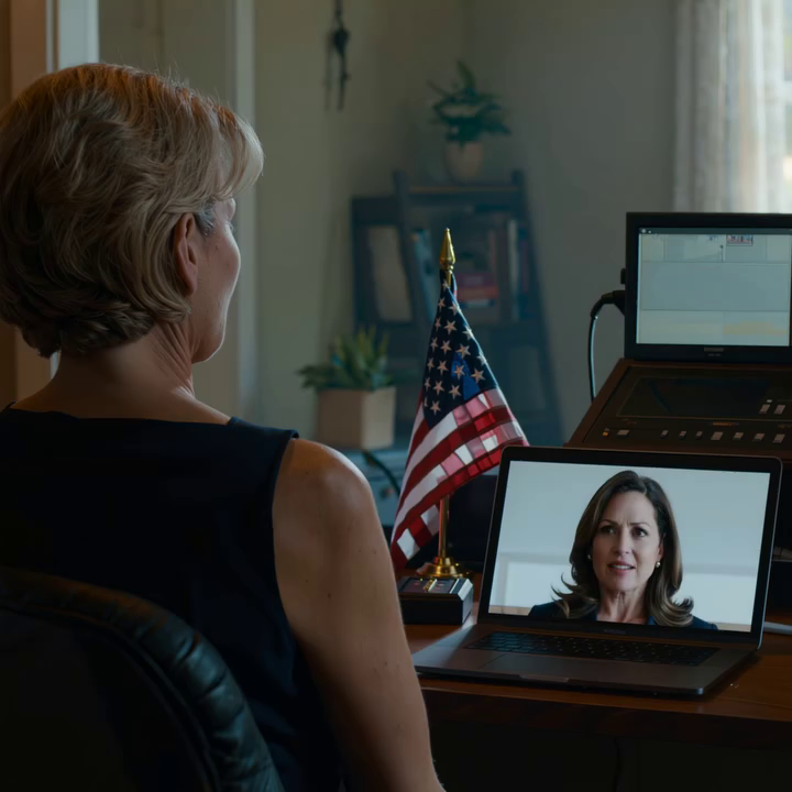 Haar blonde haar zat perfect in model, haar lippenstift was onberispelijk en haar uitdrukking was door gewoonte verscherpt.