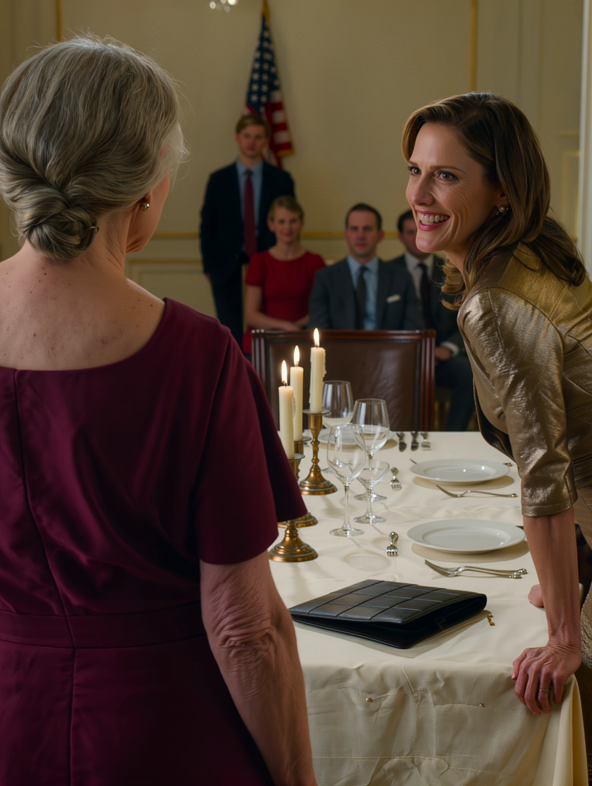 Niet iedereen lachte. Dat zou te makkelijk zijn, te karikaturaal wreed. Maar genoeg mensen wel. Genoeg mensen glimlachten achter hun drankje of leunden naar elkaar toe met verrukte, hongerige uitdrukkingen, het soort uitdrukking dat gasten dragen wanneer een bruiloft plotseling een betere vorm van entertainment aanneemt dan de band zelf. De zaal, die een moment eerder nog gevuld was met muziek, kaarslicht, gepolijste toespraken en dure parfum, veranderde in iets onheilspellends.