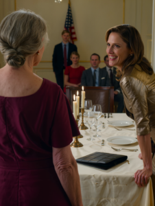 Aan het uiteinde van de tafel trok Jessica’s jongere zus haar wenkbrauwen op, al wachtend op het vermaak. Een van de neven had eindelijk zijn telefoon weggelegd. Eleanor, Jessica’s moeder, zat aan het hoofd van de tafel in een jurk van parels en crèmekleurige zijde, haar gezicht ondoorgrondelijk.