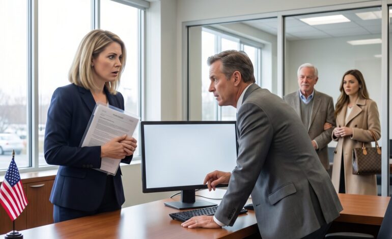 “Ze denkt dat ze hier zomaar in haar eentje binnen kan komen,” voegde hij eraan toe, terwijl hij zijn hoofd schudde. “Geen advocaat, geen zaak, alleen een uniform en een bepaalde houding.”