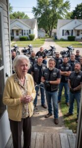 Het rolde door de buurt als verre donder, laag en gestaag, trillend door het gebarsten plaveisel en omhoog naar de fragiele houten veranda waar een 77-jarige vrouw stond te wachten. Het was geen storm. Het was iets doelbewusters, iets gecontroleerders – motoren die doelgericht samenwerkten.