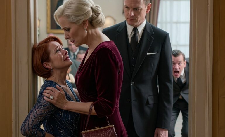 ‘Ach, praat niet met hem,’ zei ze luchtig, lachend alsof ze de ongemakkelijke situatie in de kamer juist wilde bezweren in plaats van creëren. ‘Hij is gewoon onze butler. Hulp hoort op de achtergrond te blijven.’