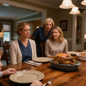 Mijn ouders kwamen als eersten aan, mijn vader met een fles supermarktwijn alsof hij een gewoon familiemoment binnenstapte in plaats van een stressvolle situatie. Aaron kwam als laatste naar beneden, ze nam de tijd, haar kinderen volgden haar op de voet. Ze zat daar met een nonchalante zelfverzekerdheid die me kippenvel bezorgde, alsof ze vergeten was dat ze in mijn huis was, aan mijn tafel, etend van het eten dat ik had gekookt na een dienst die me al helemaal had uitgeput.