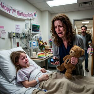 Mijn zevenjarige dochter glimlachte zwakjes vanuit haar ziekenhuisbed en zei: “Mama, dit is mijn laatste verjaardag.”