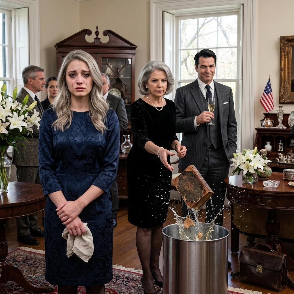 Ze draaide zich om naar Arthur’s gesloten kantoordeur, haar stem plotseling scherp genoeg om door de stille wachtkamer te snijden.