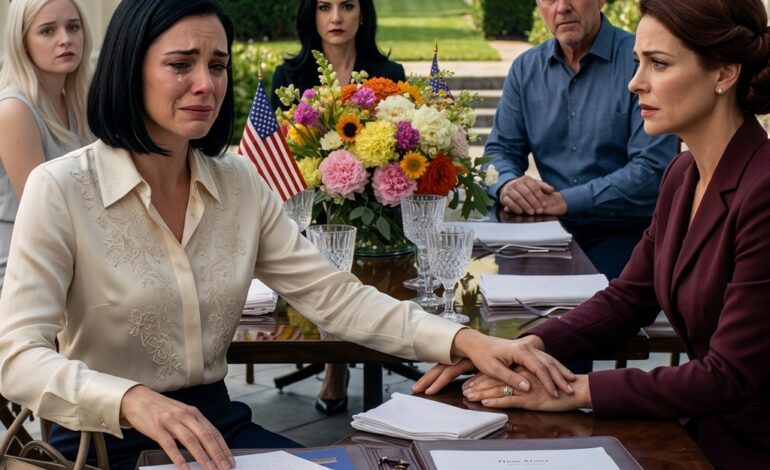 Moeder stapte naar voren en reikte naar de documenten. Haar ogen scanden de tekst. Haar handen trilden. Toen ze sprak, was haar stem zacht, bijna smekend.
