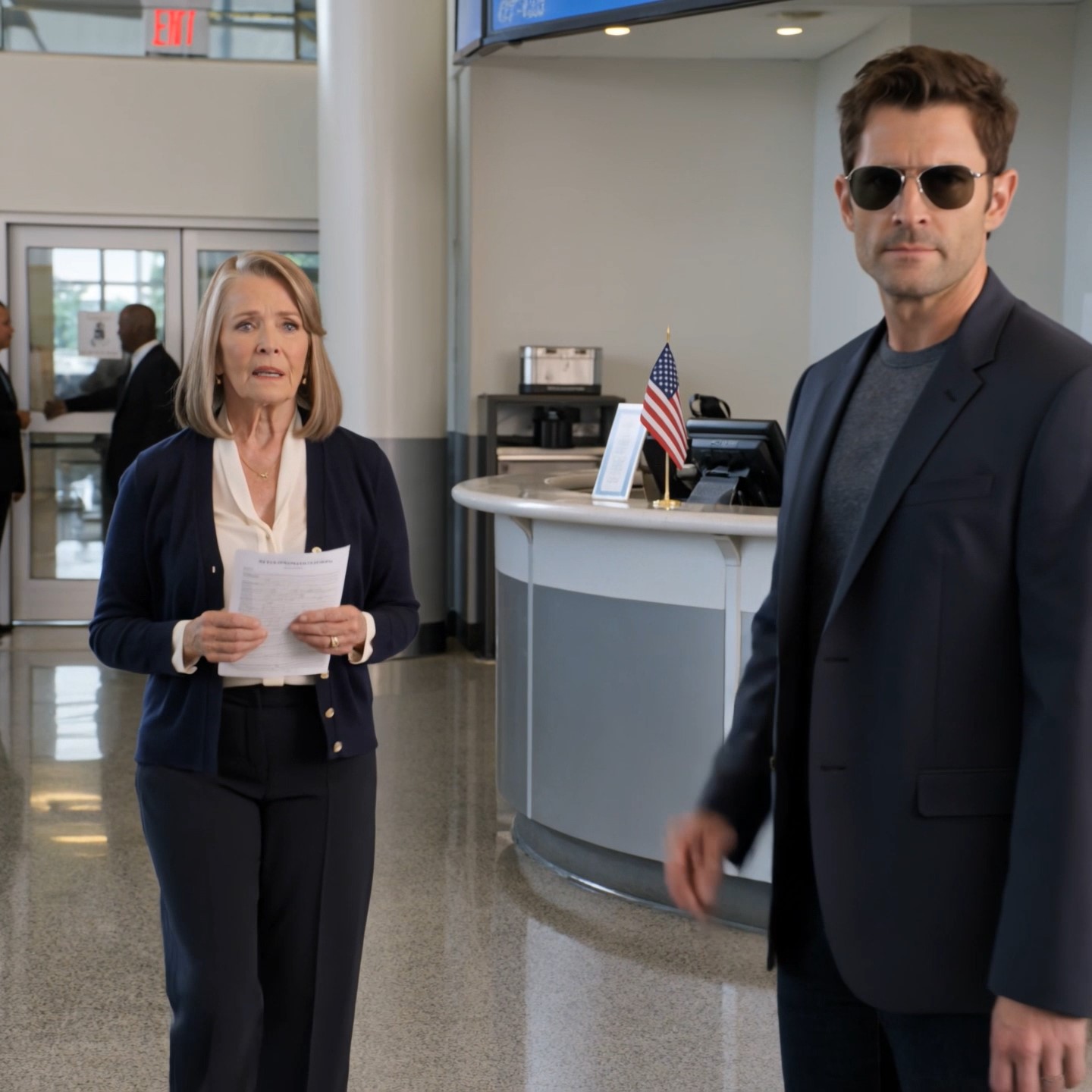 “Ik ben agent Michael Carter. FBI. Je vader heeft me gevraagd je hier te ontmoeten.”